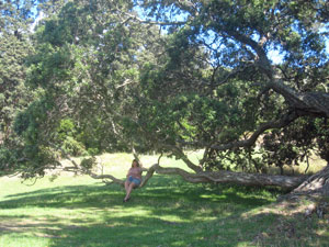 Huge pohutukawa trees offer a good view seat.