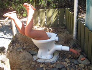This sculpture near the toilets warns you not to drop your cellphone in.