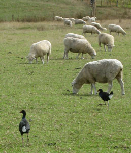 Pokekos and sheep keep us company.