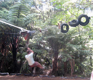 ...and slam into tyres on a zipline.