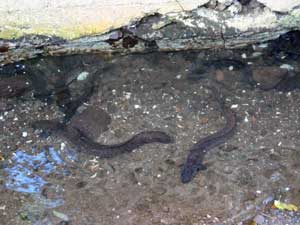 Dave refuses to climb down and hand feed the giant eels.
