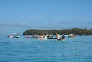 Boats gather to feed the stingrays.