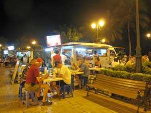 Every night the roulettes roll out along the waterfront, serving Chinese cuisine, seafood, crepes. We had huge plates for barbequed veal.