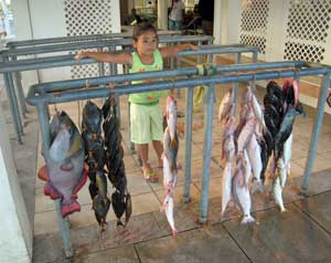 A fish stall at Uturoa town market.
