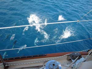 After a squally night, we are making good time. Seas are about as forecast, 3 meters in 9 second intervals, yuk. But winds are stronger than forecast, 20's rather than teens, so we are trucking along. We expect to arrive at Pt Venus after dark, and anchor in its lee, then enter Papeete tomorrow.