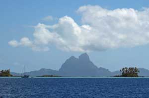 Beautiful Bora Bora looms 20 miles away, across Tahaa's barrier reef.