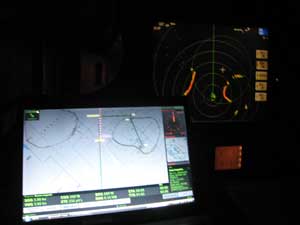 The radar confirms the chartplotter, showing 2 atolls.