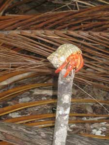 This hermit crab is riding lookout.