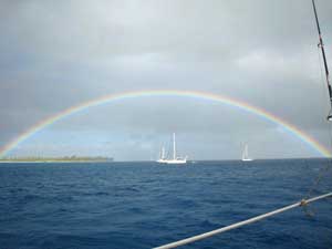 A rainbow blesses this boat.