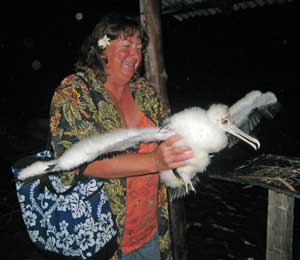 Jan holds an orphaned baby frigate.